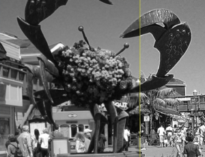 between colors; Full color, red, green or blue channel